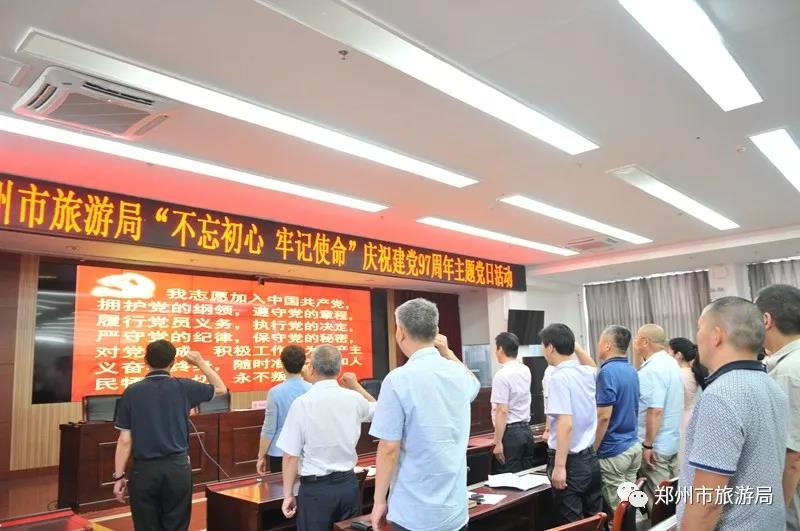 為慶祝建黨97周年,深入學(xué)習(xí)貫徹習(xí)近平新時代中國特色社會主義思想和黨的十九大精神,進一步落實新時代黨的建設(shè)總要求,引導(dǎo)廣黨員做新時代合格黨員,2018年7月3日,鄭州市旅游局舉行“不忘初心,牢記使命” 慶祝建黨97周年主題黨日活動;顒哟髸希x了《關(guān)于表彰2017-2018年度優(yōu)秀共產(chǎn)黨員的決定》,全體人員共同回顧黨的光輝歷史,緬懷黨的豐功偉績,重溫入黨誓詞。