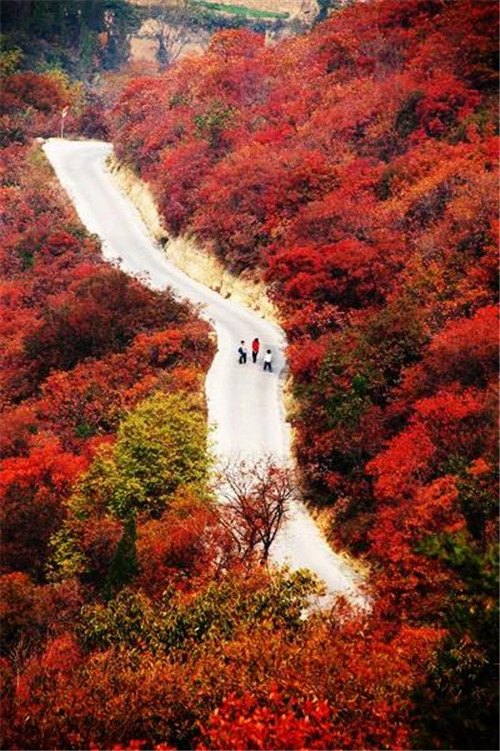 漫步在山間小道上,人們不為南飛的大雁所吸引,不為飄香的丹桂所癡望,只為漫山遍野的紅葉所駐足。