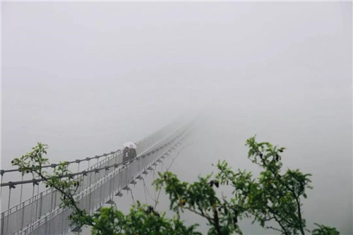 步云橋的一邊延伸到云霧中,青山半遮面,云深不知處。人行其上,耳邊清風(fēng)徐徐,云海一望無(wú)際,飄然若夢(mèng)。