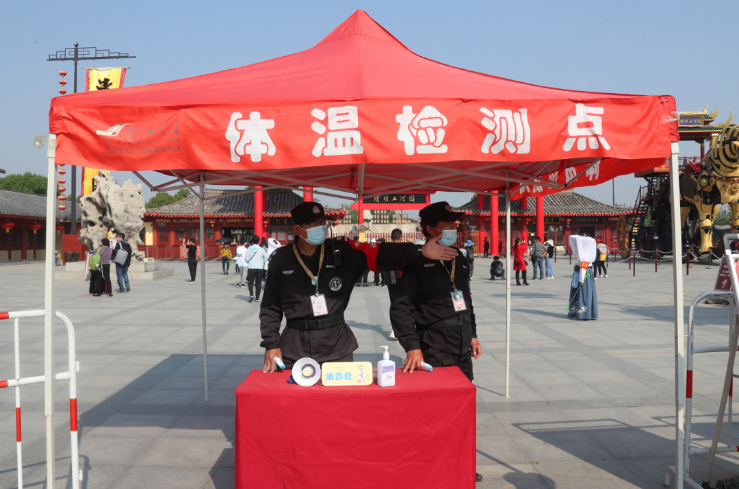 景區(qū)全員上崗引導(dǎo)游客間隔入園,增開兩個門區(qū)和一個備開門區(qū),在景區(qū)出入口處,重要參觀點等易聚集區(qū)域設(shè)置專人,加強疏導(dǎo),避免擁堵,以最大程度上確保游客能夠有序進入園區(qū)。