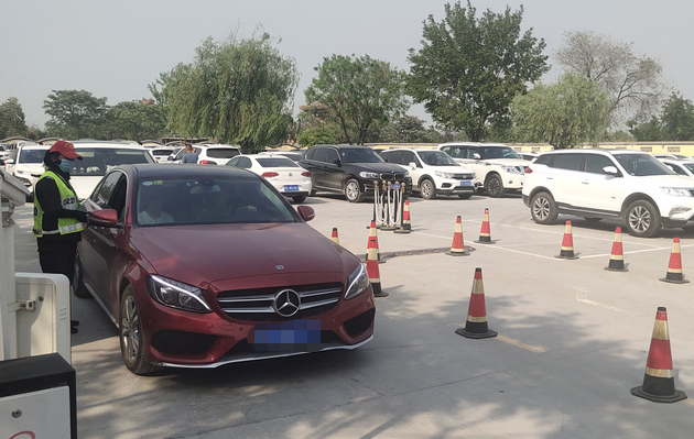 不少游客選擇自駕來到清明上河園,為確保車輛進出有序,工作人員不間斷在出入口指揮引導(dǎo)。