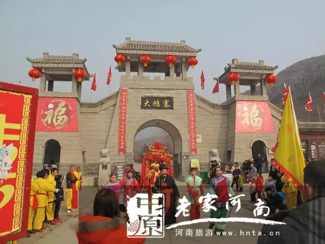 大年初一這天,大鴻寨景區(qū)鑼鼓喧天,炮竹齊鳴。拉開了廟會(huì)開始的序幕。各種不同的民俗節(jié)目火熱開演,熱鬧非凡。