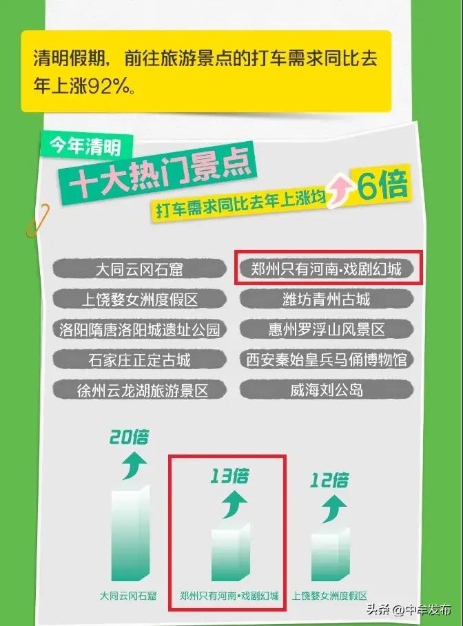 清明假期,位于河南鄭州的只有河南·戲劇幻城再次成為熱門旅游目的地。根據《2024滴滴清明假期出行數據報告》顯示,只有河南·戲劇幻城位列清明異地出行十大熱門景點,打車需求同比去年上漲13倍,居全國第二位。