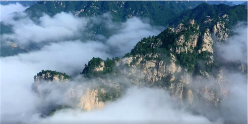 仰視伏牛山神,祈愿秋后歲歲安康。展望青紫牛尖犄角,看它烈日之下盡然忘卻了云海纏繞,俯身昂頭,一往無前,似沖出邊際!