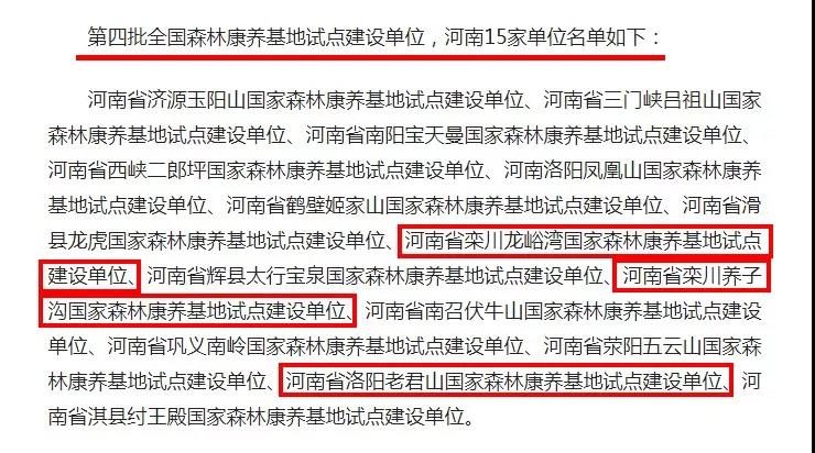 恭喜!老君山風(fēng)景區(qū)、龍峪灣國(guó)家森林公園和養(yǎng)子溝景區(qū)被正式授牌為“第四批全國(guó)森林康養(yǎng)基地試點(diǎn)建設(shè)單位”!