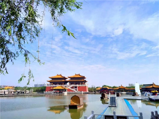宣和殿、宣德殿連理而成臨水大殿,兩殿造型巍峨莊重,偎依而立,如同一對(duì)在水邊私語(yǔ)的愛侶。兩座大殿在宋代是男賓、女眷的兩個(gè)大包廂,與水心榭聯(lián)結(jié)起來,就是一個(gè)功能考究的皇家歌劇院。從這里俯瞰全園,景色層次分明,園中諸景,盡收眼底。