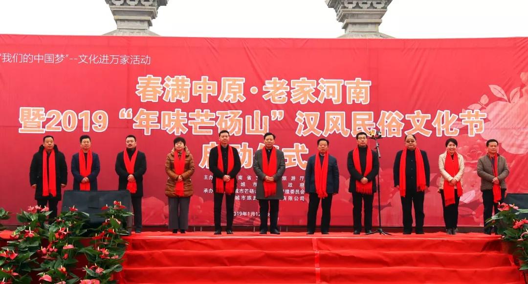 2019年1月12日上午,芒碭山旅游區(qū)漢博苑廣場漢旗獵獵,鼓樂嘹亮,一片歡樂祥和,各種民俗表演異彩紛呈,到處是喜迎新春的氛圍。11時整,“春滿中原·老家河南”系列主題文化活動在芒碭山旅游區(qū)隆重啟動,一場以民俗文化豐富旅游產(chǎn)品,推動文化旅游融合發(fā)展的系列主題活動拉開大幕。