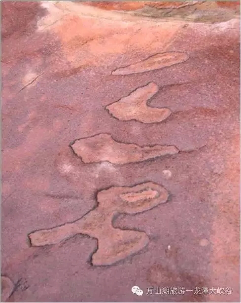 4、經(jīng)過貴人彎腰洞,那就能看到天書了,它在哪兒呢,請(qǐng)看這塊巨石,在這塊石頭表面天然形成許多圖案,最典型的要屬“一人一石”和“工”這幾個(gè)字了,“石”也讀諧音“dan ”,在古代皇帝發(fā)給臣子的俸祿,就是以“石”作重量單位,“一人一石”恐怕是上天要求我們平均分配財(cái)產(chǎn)的警示。這塊石頭被當(dāng)?shù)厝艘曌?ldquo;神物”,他們說只要以虔誠的心輕輕摸一下這塊石頭,來年就一定能走好運(yùn)。另外,這塊石頭上還有許多少數(shù)民族文字呢,大家感興趣的話不妨來找一找。