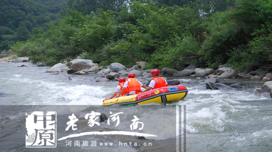 漂流地段很長,兩岸忽而怪石林立,如刀削斧砍;忽而山川開闊,沙灘瑩瑩,卵石滾滾,如大海沙灘;忽而岸柳輕揚(yáng),河草萋萋,河魚草蝦深游淺出,悠然自得。游客乘坐漂流筏順流而下,時而穿越山重水復(fù)的峽谷,體驗(yàn)浪遏飛舟的快感,享受戰(zhàn)勝自我的激情;時而漂流于蒼翠幽靜的樹叢之中,觀賞周圍美麗的奇景,縱情于山水之間;時而旋轉(zhuǎn)360°、時而速降、時而緩緩漂流。
