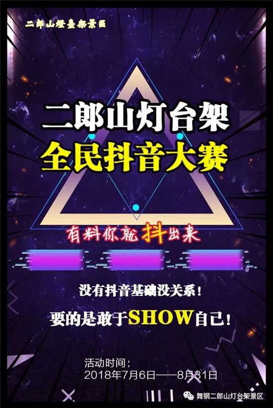 嗨,朋友,二郎山燈臺架抖音大賽,了解一下?在這里你將獲得展現(xiàn)自己創(chuàng)意的機(jī)會,得到更多人的認(rèn)可,認(rèn)識更多有趣好玩的同道中人!釋放你的想象力,帶上梁靜茹給你的勇氣,拿上你價值$300的手機(jī),拍一段能讓你火的視頻。無論你是哪種奇才,無論你的視頻是炫酷類、創(chuàng)意類、魔性類,還是鬼畜類,只要你敢你會拍景區(qū)統(tǒng)統(tǒng)照單全收!