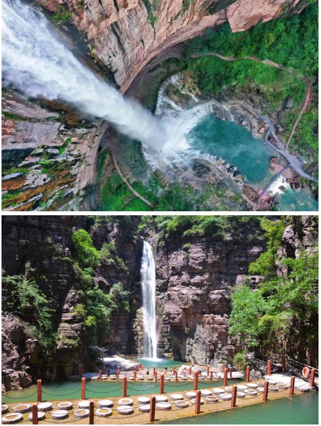 “空山新雨后”,雨后的新鄉(xiāng)南太行,空氣中便多了一分清爽之感,景區(qū)里多條瀑布飛流直下,奔騰轟鳴,因高度落差而產(chǎn)生的水汽,讓人感覺陣陣清涼。
