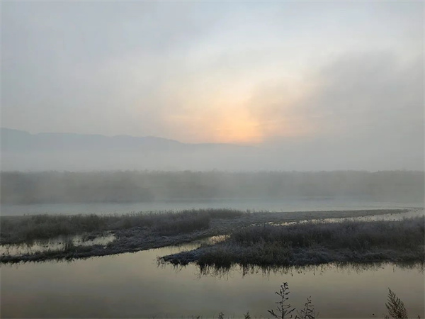 隨著時(shí)間的流逝,晨光慢慢流淌,它們的顏色也發(fā)生了微妙的變化,霞光掀起山邊的云紗,土塬、河流、草木逐漸清晰,詩情畫意,美輪美奐。