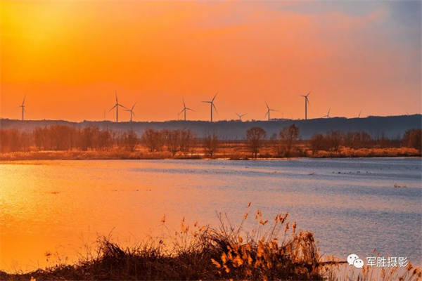 濕地蘆葦在夕陽照射下,別有冬韻。