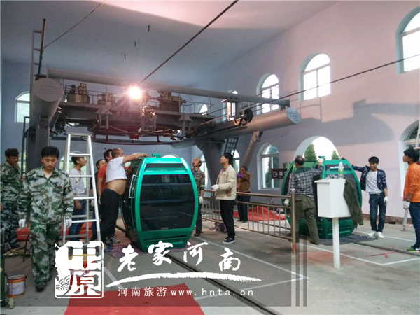 2016年 5月24日下午7點(diǎn),新鄉(xiāng)南太行天界山“清峰關(guān)”索道換用新式吊廂正式開工。經(jīng)過日夜加班加點(diǎn)工作,僅用4天時間,新式的44臺綠色吊廂安裝完畢。