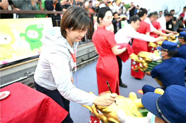 “點(diǎn)睛”儀式、摩托艇、水上空中飛人等助陣龍舟賽