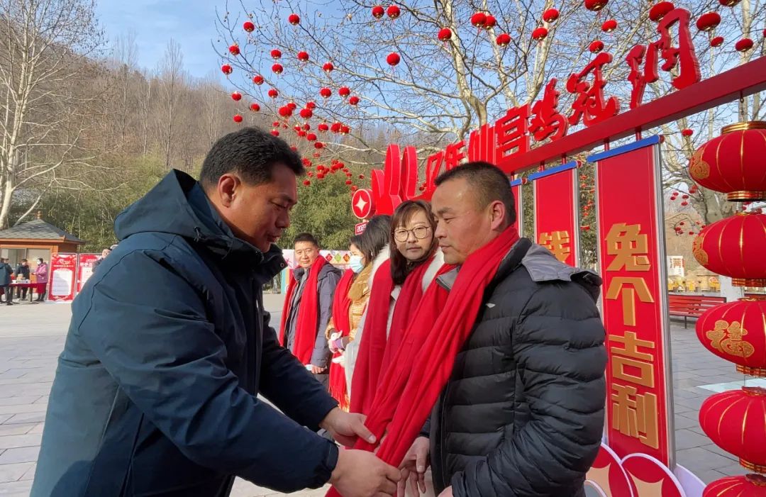 一大早,景區(qū)為卯兔新年首批幸運(yùn)游客送上代表美好祝福的紅圍巾以及新年紅包,同時(shí)邀請(qǐng)他們?cè)诰皡^(qū)洞天福地祈福墻掛上新年祈福牌,祈愿新年勝舊年,萬(wàn)事皆如意!