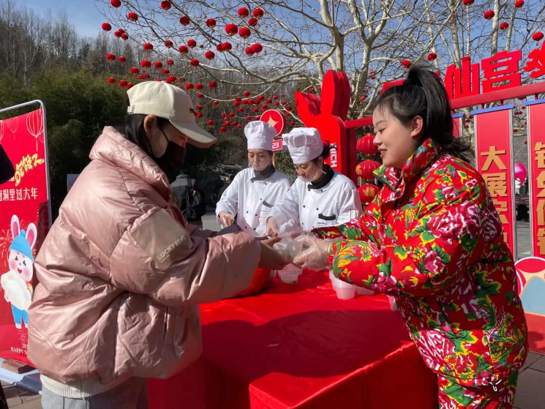 春節(jié)“吃餃子”是我國(guó)的傳統(tǒng)習(xí)俗,餃子是團(tuán)圓的代名詞,更象征著吉祥、財(cái)富!景區(qū)為廣大游客朋友準(zhǔn)備了“餃子宴”,讓外出游玩的游客朋友免費(fèi)吃到熱氣騰騰的餃子,他們一起吃餃子、看表演,歡聲笑語(yǔ)間洋溢著喜慶的節(jié)日氛圍!