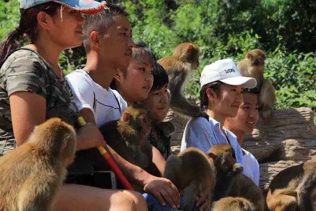 與猴子親密嬉戲