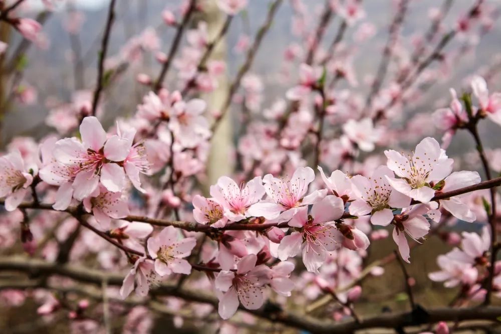 萬物復蘇,大地回春,山川與云霧、天與地、花與草都環(huán)環(huán)相扣,搭配出樂趣橫生的旖旎風光 。