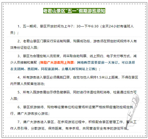 長達(dá)五天的五一小長假就要來了,為了保障您安全出行,有序游覽,老君山景區(qū)向廣大游客發(fā)布溫馨提示——