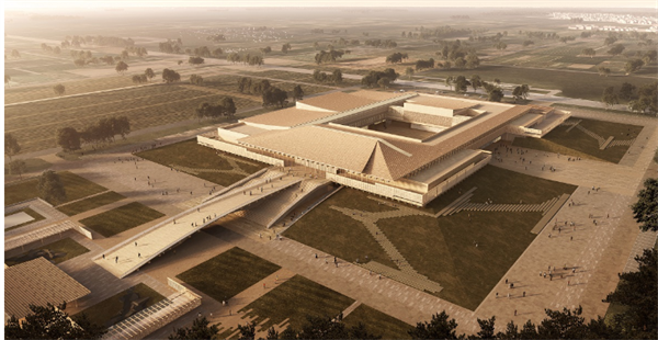 洛陽市文物局相關(guān)負(fù)責(zé)人介紹,漢魏故城遺址博物館作為洛陽五大都城遺址博物館群重要組成部分,建筑設(shè)計(jì)風(fēng)格同其他遺址博物館既相互關(guān)聯(lián)又和而不同,傳承“中”“和”思想,承襲漢魏都城“建中立極”都城形制,威嚴(yán)莊重、大氣舒展,和諧融入周邊環(huán)境,將塑造“高臺(tái)-大殿”的當(dāng)代殿堂形象,從臺(tái)基至屋檐采用草階臺(tái)地、現(xiàn)代鋼木結(jié)構(gòu)、陶磚、陶瓦等外立面主材,抽象詮釋漢魏千年建構(gòu)技藝演化。