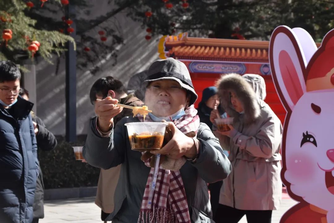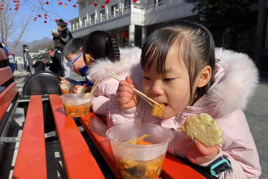大年初三雖然天氣晴朗,但數(shù)九寒天依然寒冷,現(xiàn)場(chǎng)游客自覺排起長(zhǎng)隊(duì),有序領(lǐng)取景區(qū)準(zhǔn)備的“五福菜”。綠色健康、鮮香味美的“五福菜”讓游客朋友贊不絕口,大快朵頤!