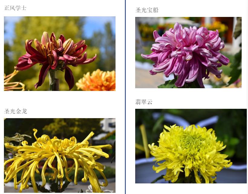 目前正風(fēng)學(xué)士、圣光寶船、圣光金龍、翡翠云等,早期精品菊花,已進(jìn)入最佳觀賞期。