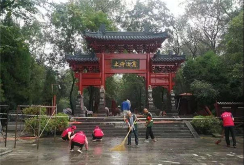 登封嵩陽書院文化旅游志愿者對地上的污漬、淤泥進(jìn)行徹底的大掃除。確保以更加優(yōu)質(zhì)的服務(wù),迎接來自全國的四海賓朋。