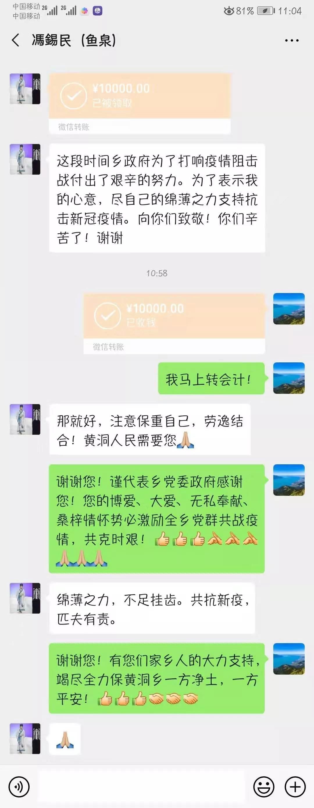為支持堅(jiān)公故里、林氏祖地--淇縣黃洞鄉(xiāng)疫情防控工作,淇縣林堅(jiān)文化旅游發(fā)展有限公司董事長馮錫民捐款10000元,同心戰(zhàn)疫,共克時(shí)艱。