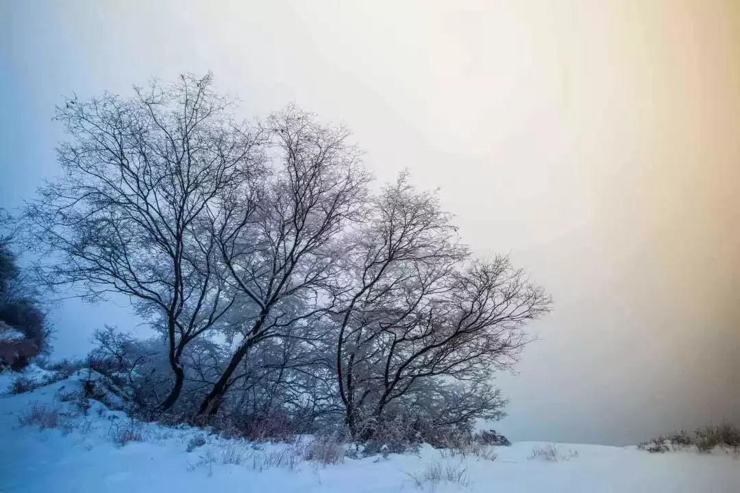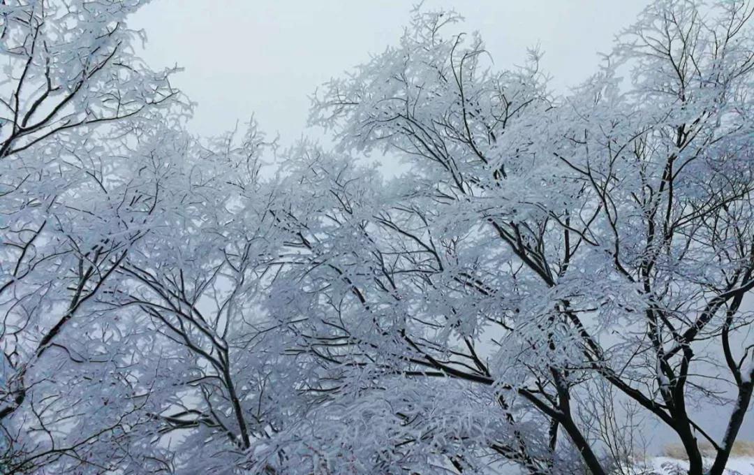 連綿起伏的山巒間布滿了白雪,形態(tài)各異的霧凇把樹枝層層包裹,比天堂更美,比仙境更仙。