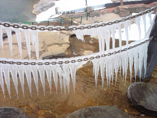 夏看天瀑奇觀,冬賞銀河倒掛。沿著景區(qū)小道走到峽谷盡頭,就是欣賞天然冰雕的地方。這里好似“廣寒宮”一般,冰柱晶瑩剔透,冰花燦爛怒放,各種冰瀑、冰柱、冰墻、冰燈、冰簾呈現在眼前,好一個冰清玉潔的世界!