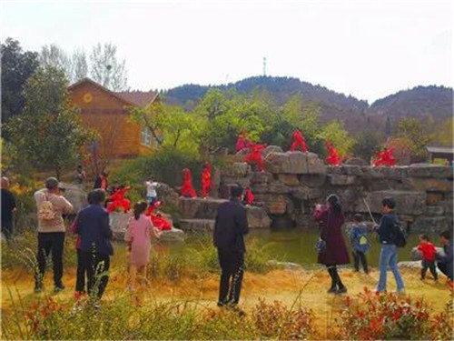 賞百林桃園。一群群太行山中的萌寵,在你身邊穿梭跳躍,雙眼皮、大眼睛,呆呆地望著你,瞬間萌化你的心竹。