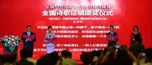詩歌是時代精神的象征。眼下,“弘揚與傳承新時代愚公移山精神”全國詩歌征集頒獎活動已經落下帷幕,大幕降落,但余音勢必繞梁。