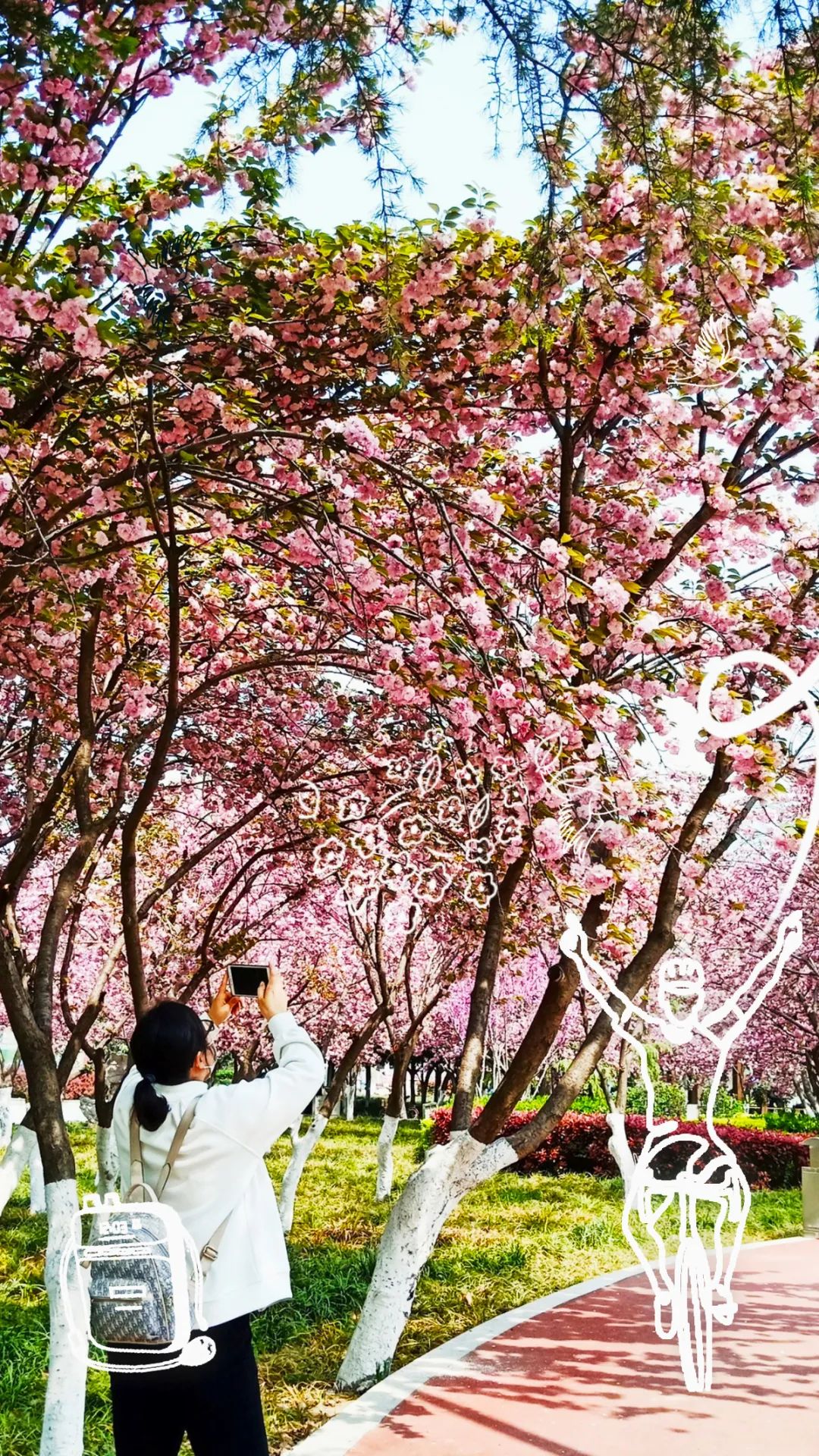 到了春天,怎能不賞櫻花?賞櫻怎能不去日月湖景區(qū)的櫻花島?整個櫻花島面積約8500平方米,沿湖水榭長廊100余米,園區(qū)小路環(huán)繞其中,沿路兩旁土坡上分布著約550棵櫻花樹。