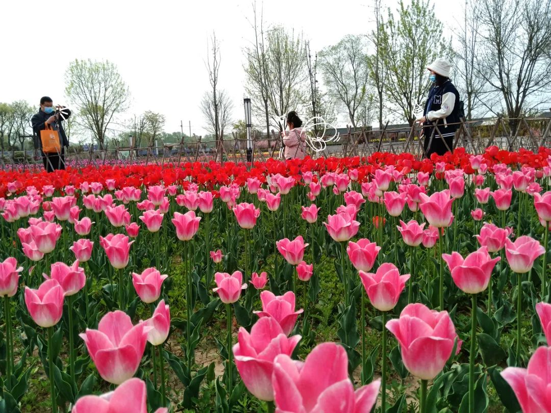 商丘市賞郁金香的地方,就是漢梁文化公園了。這里郁金香的種植面積為4500平方米,共計約20萬株郁金香,按照大紅、玫紅、黃色、紫色等不同的顏色,進(jìn)行分區(qū)域種植。