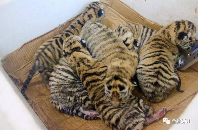 12月7日,“英雄母親”編號(hào)466的東北虎,從中午11點(diǎn)至晚上23點(diǎn),共生產(chǎn)6只小虎。新生的6只小虎,體重都在2斤3兩左右,生命體征正常。