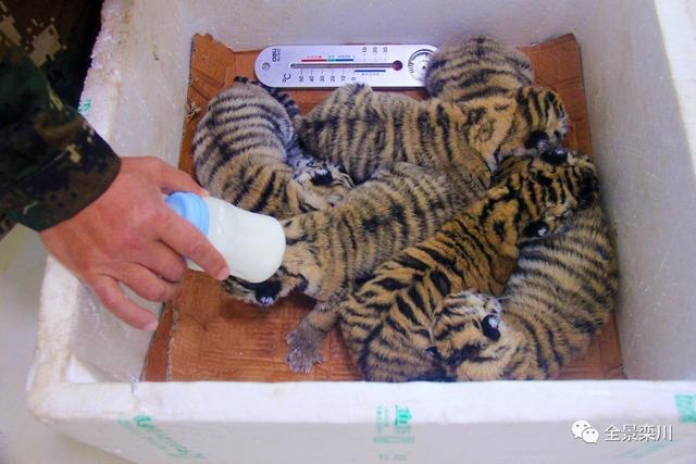 據(jù)了解,一般成年母虎只有四個(gè)乳頭,產(chǎn)子數(shù)量1-3只為正常,4-5只的很少,一次產(chǎn)下6只小老虎在世界范圍內(nèi)都屬罕見(jiàn)。由于編號(hào)466東北虎是初次產(chǎn)子,所以6只小東北虎均需人工喂養(yǎng),主要喂食羊奶。