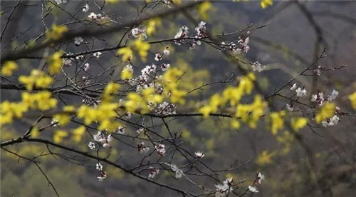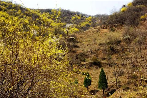山上還開著野杏花,層層疊疊的杏花,窈窕婀娜,鬧而不喧,蜂飛蝶舞的花叢中散發(fā)出陣陣芬芳,盡顯春天的景色,與錯落有致的山脈交相輝映,構(gòu)成一幅美麗的山水畫卷。