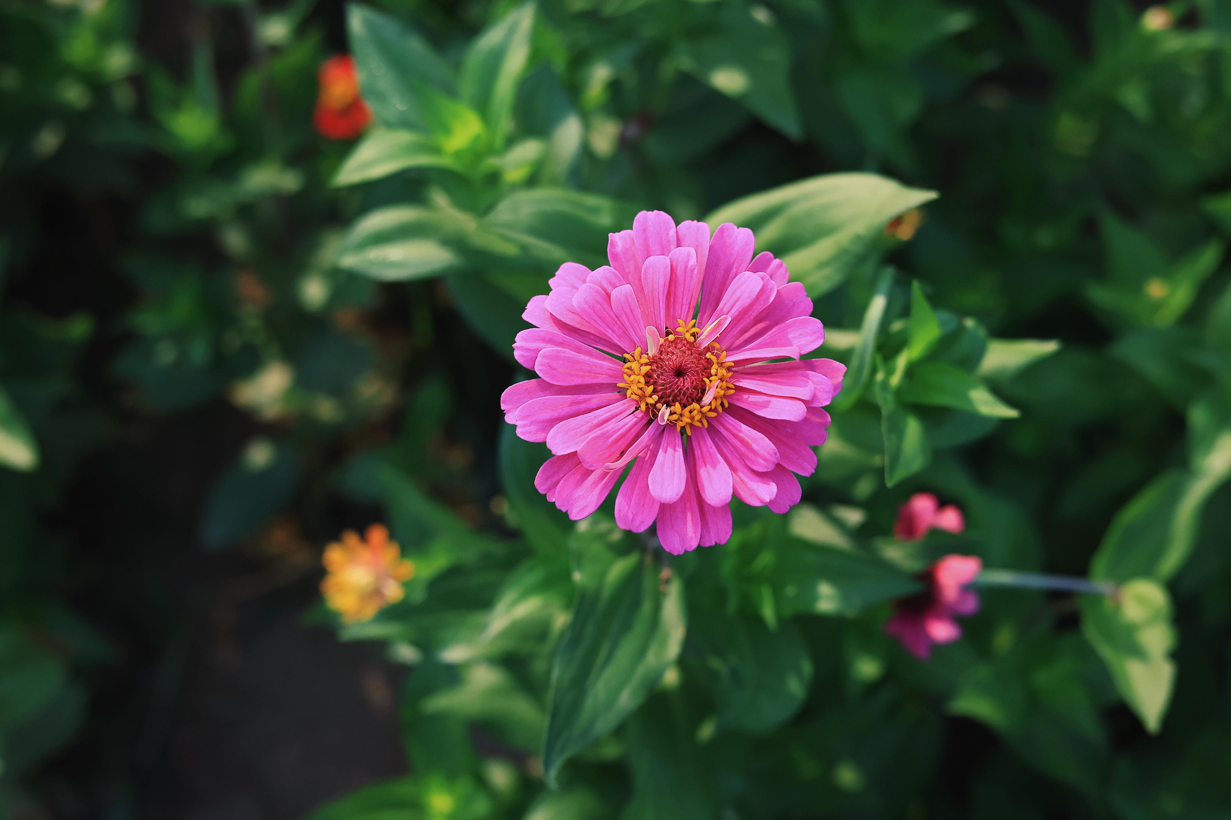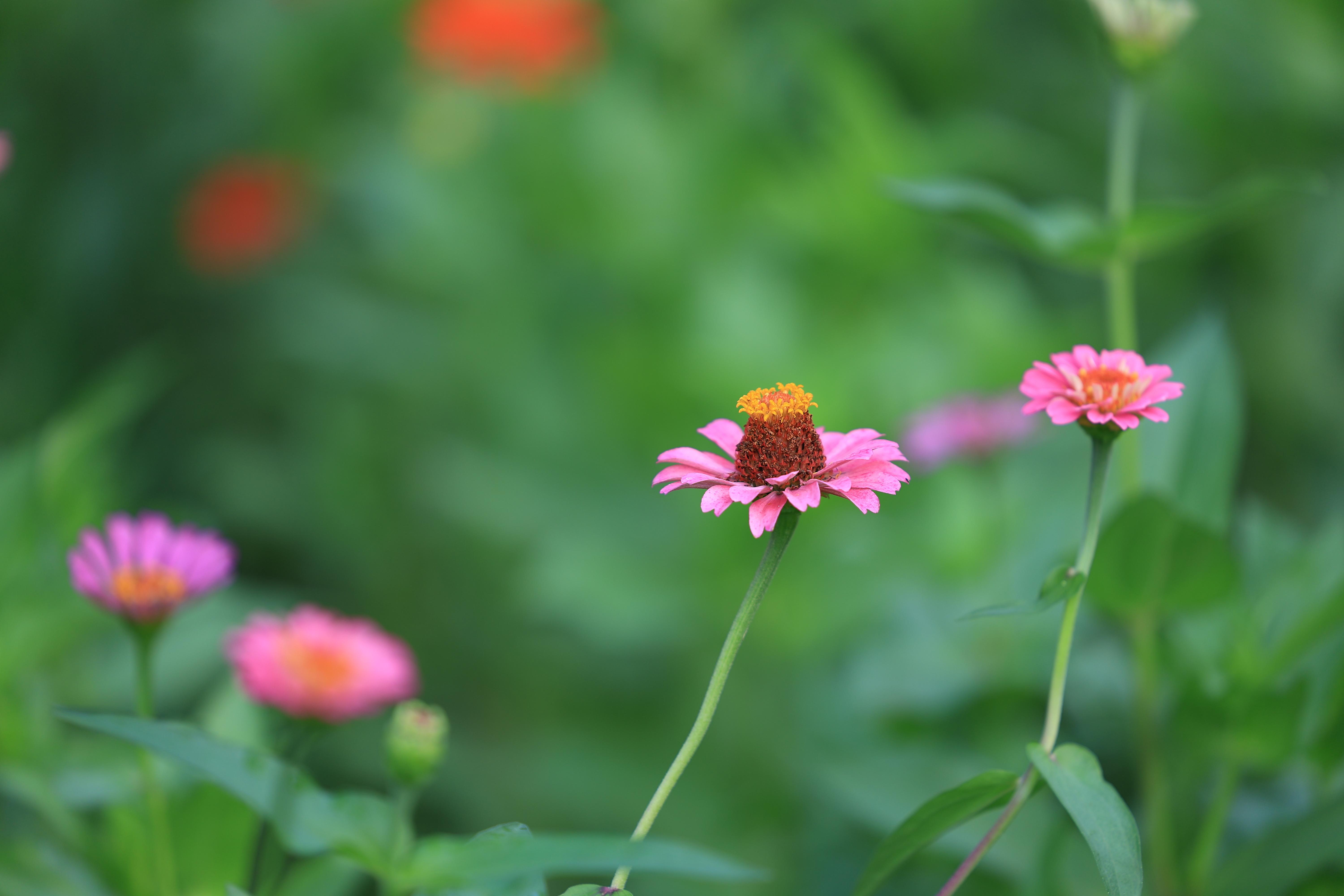 百日菊喜溫暖,是菊科的一種一年生草本植物;ㄆ诎偃詹粩,從夏季到秋季,花朵陸續(xù)開放,因此又名“百日草”。有趣的是,百日菊第一朵花開在頂端,然后側(cè)枝頂端開花,比第一朵開得更高,所以百日菊的花語(yǔ)是:步步高升。