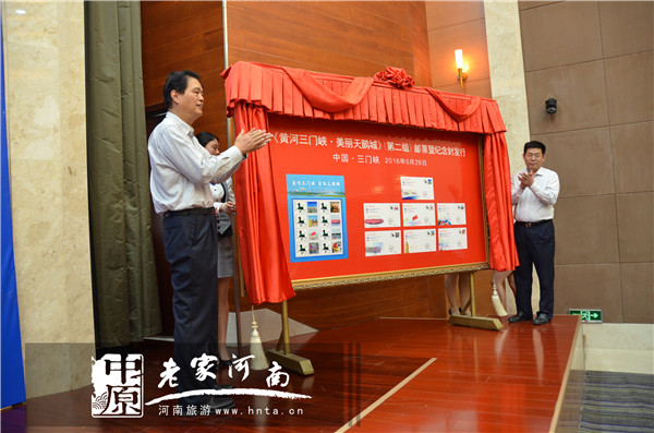 5月26日下午,三門峽市委常委、宣傳部長呂挺琳,河南省郵政分公司副總經(jīng)理郭洪杰,三門峽市人大常委會副主任張朝紅,市政協(xié)副主席張景林,市政府黨組成員水選民,河南省集郵分公司經(jīng)理胡慶魁、藝術總監(jiān)劉釗,三門峽市郵政分公司黨委書記、總經(jīng)理張大海和市政府辦公室副主任封澤孝等領導出席了郵票發(fā)行儀式;市直有關部門和旅游景區(qū)負責人、媒體記者、集郵愛好者等200多人在現(xiàn)場參加了發(fā)行活動。封澤孝主持發(fā)行儀式,水選民和郭洪杰分別致辭,呂挺琳和郭洪杰一起為郵票和紀念封揭幕。