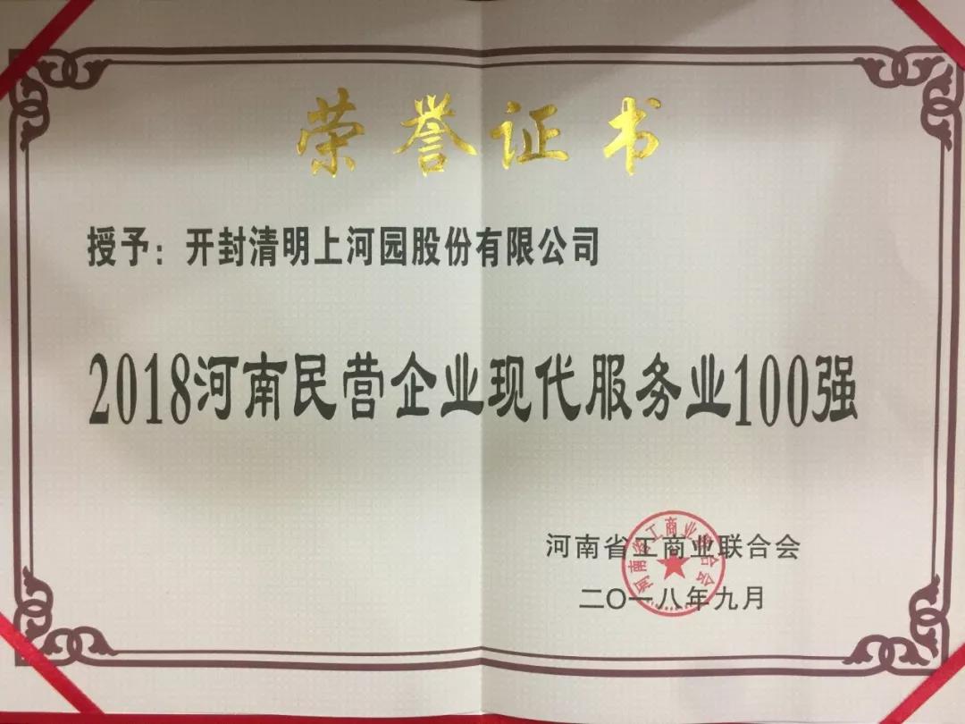 喜報!清明上河園上榜2018河南民營企業(yè)現(xiàn)代服務(wù)業(yè)100強