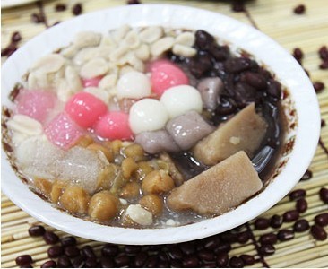 就是綜合甜湯的里面有芋頭、蓮子、湯圓、芋圓、紅豆、花生等等,里面的花生煮的糯糯而不爛,芋圓也很有嚼勁。