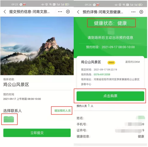 預(yù)約健康碼是將門票預(yù)約碼和健康碼二碼合一,只要通過預(yù)約健康碼購票成功,即說明健康碼為綠碼。通過預(yù)約健康碼購票成功,在進(jìn)入景區(qū)時無需再單獨出示檢查健康碼。
