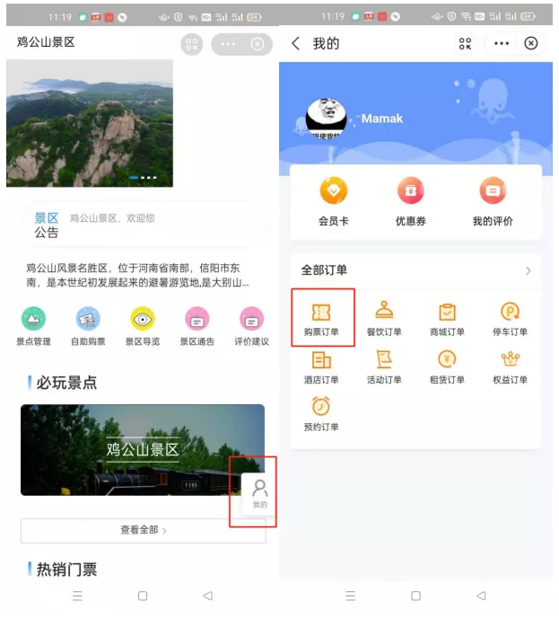 預(yù)訂的門票沒有在景區(qū)進(jìn)行檢票的情況下,可通過以線上遠(yuǎn)程或現(xiàn)場掃碼的方式進(jìn)入查看“我的”-“購票訂單”,進(jìn)行申請退票,如下圖所示: