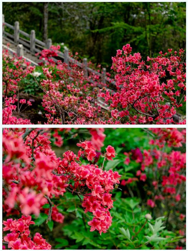 高山牡丹園、玉皇頂之上,杜鵑花開一簇簇、一叢叢,將積蓄一年的力量毫無保留地釋放于這場(chǎng)盛大的花事中,無限的生機(jī)與熱情。