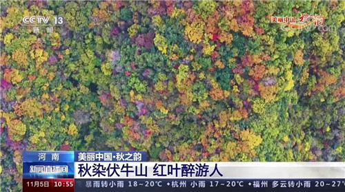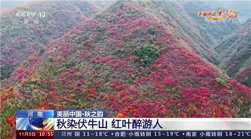 重渡溝青山紅遍,層層疊疊,如詩如畫。11月5日上午,央視新聞頻道《新聞直播間》欄目“美麗中國·秋之韻”,播報欒川重渡溝秋日盛景。