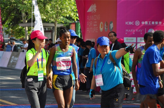 值得一提的是,幾位埃塞俄比亞還專門邀請了兩位男性隊友來到鄭州擔任“兔子”,為自己領跑。而最終,由兩位高水平黑人男選手領跑的埃塞俄比亞選手也不負眾望,在兩位“男兔”的帶領下,徹納特率先沖過終點,以1小時 13分09秒的成績奪得冠軍?夏醽嗊x手莫倫和蒙古選手門可匝亞分別以1小時15分43和1小時17分14秒的成績位居第二和第三。來自甘肅的選手楊鳳霞,獲得了第七名,成為唯一一位獲獎的中國選手。
