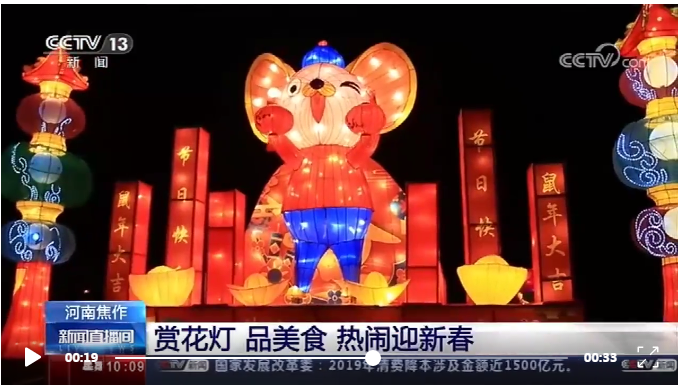 1月20日晚19:26央視《新聞聯(lián)播》報(bào)道云臺(tái)山春節(jié)傳統(tǒng)彩燈和現(xiàn)代光影秀,讓廣大游客感受到春節(jié)的歡樂喜慶!上午10:00央視《新聞直播間》也對(duì)云臺(tái)山新春做了報(bào)道。
