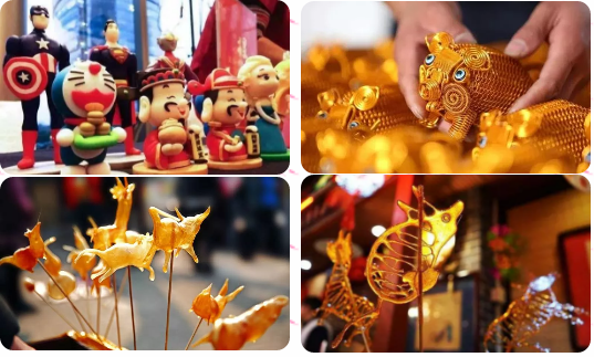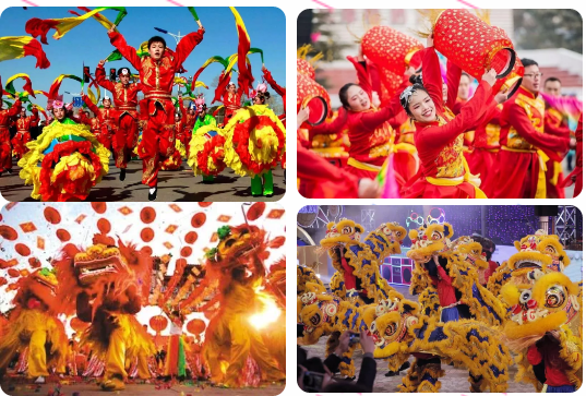 雄獅鬧春、安塞腰鼓、秧歌、燈籠舞……捏面人、吹糖人、倒糖畫、鋁編、皮影戲……三十多種民俗非遺表演輪番上場(chǎng)。