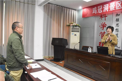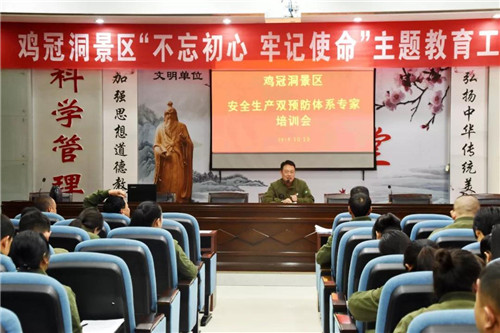 為大力開展景區(qū)安全生產雙預防工作,進一步強化景區(qū)各部門安全責任意識,10月10日上午雞冠洞旅游發(fā)展有限公司,邀請洛陽安全講師在景區(qū)多功能廳召開了以“安全生產雙預防體系專家培訓會”為主題的培訓會。